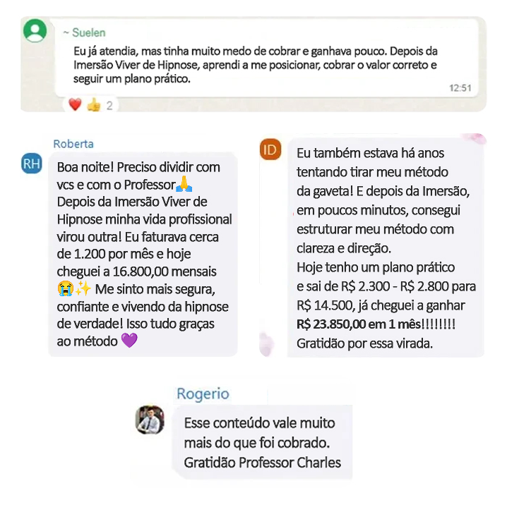 O que outros profissionais conseguiram após aplicar a VIDA DE HIPNOTERAPEUTA: